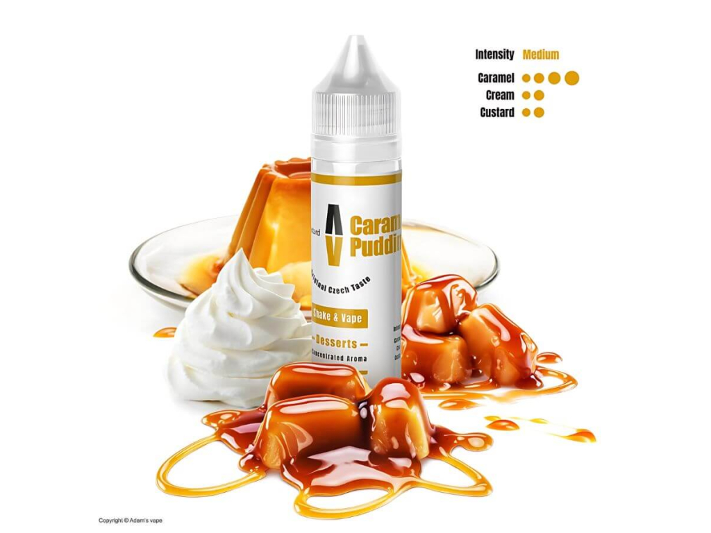 Adams Vape – Caramel Pudding vás na první potah překvapí jemným pudinkovým základem, který se plynule rozvine do bohaté chuti karamelu a spojí se s smetanovým krémem. Tato příchuť připomíná pocit, kdy se zakousnete do lahodného pudinkovo-karamelového moučníku – sladkost je dokonale vyvážená a karamelový tón doznívá ještě dlouho po výdechu. Ideální volba pro všechny milovníky dezertních příchutí.