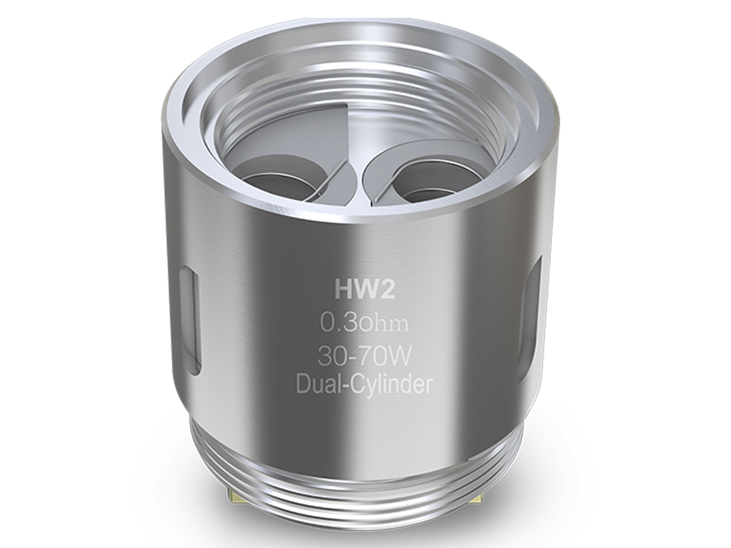 Žhavící hlava s označením HW2 v sobě ukrývá dvě kanthalové žhavící spirálky s celkovým odporem 0,3 ohm. Nastavit si můžete výkon 30-70W. Díky vyššímu počtu spirálek dosáhnete s touto hlavou obrovského množství páry.