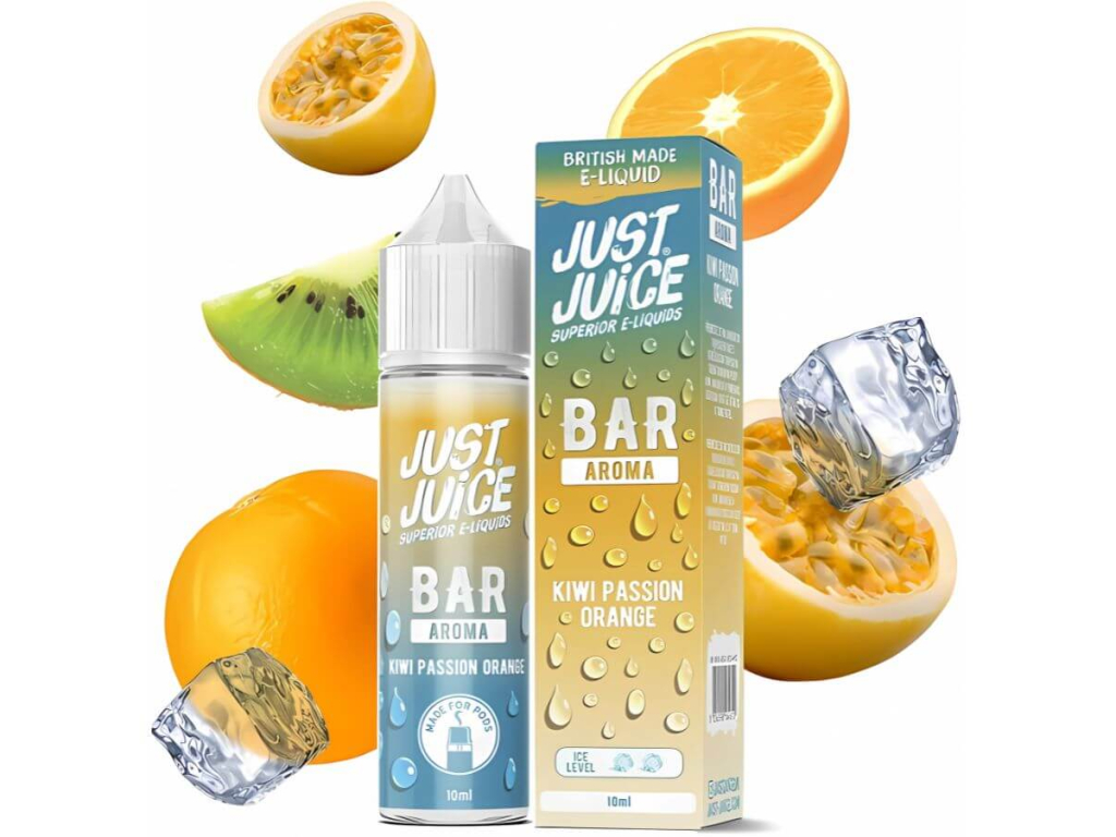 Just Juice Kiwi Passion Orange je perfektní volba pro milovníky tropického ovoce a intenzivních chutí s ledovým závěrem.