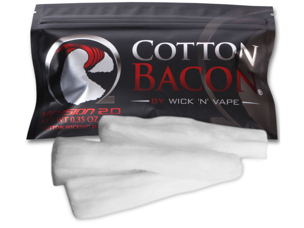 Druhá verze (2.0) Cotton Bacon si prošla novými postupy na odstranění přebytečných přírodních olejů, je tak díky tomu naprosto bez chuti, lépe absorbuje e-liquid (i s vysokým procentem VG) a je odolnější proti přepálení.