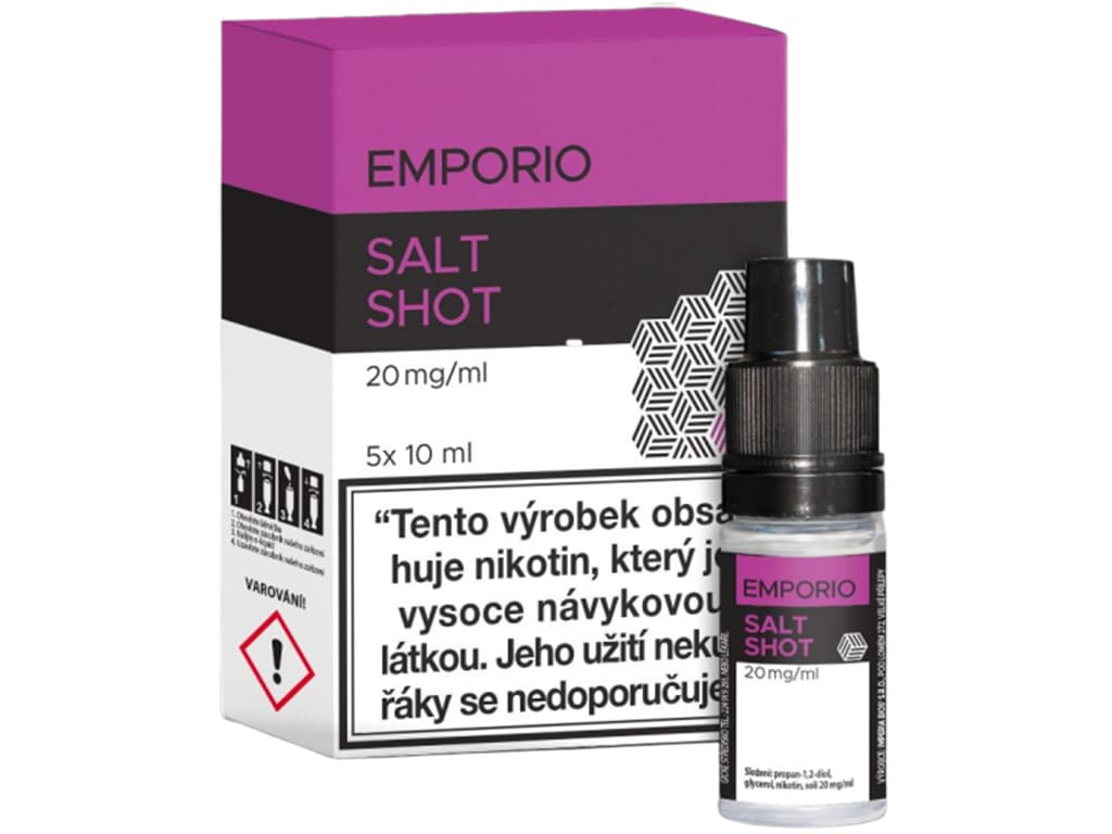 Booster Emporio Salt Shot je neochucená báze s vysokým obsahem nikotinu ve formě nikotinové soli. Booster tvoří základ pro míchání a tvorbu vlastních e-liquidů. Výhodou nikotinové soli je, že se rychleji vstřebává a nedráždí v krku při potahu (což znamená, že 20 mg/ml nikotinové soli se pocitově rovná 6 mg/ml klasického nikotinu). Nikotinová sůl je tedy vhodnou volbou pro kuřáky, kteří přecházejí z klasických cigaret na elektronické, kde je potřeba vyššího množství nikotinu bez dráždivého pocitu.